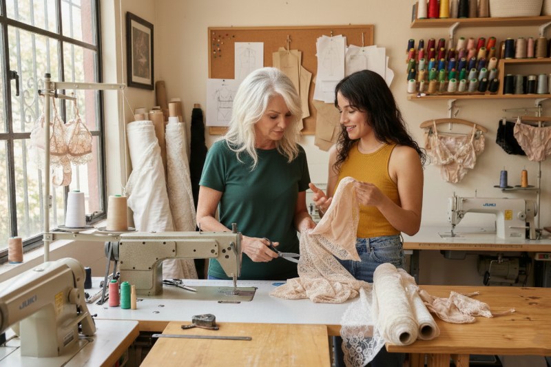 Άρχισε να πειραματίζεται με στρώσεις. Να δοκιμάζει υφάσματα. Να ράβει, να ξηλώνει και να ράβει ξανά. Δεν προσπαθούσε να φτιάξει «ιατρικά εσώρουχα». Ήθελε κάτι απαλό, θηλυκό, διακριτικό και πραγματικά προστατευτικό.
